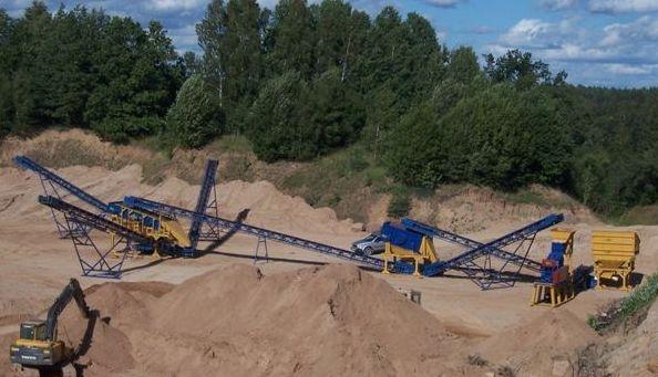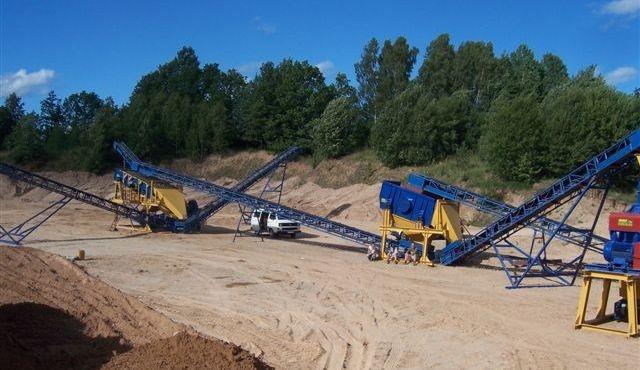 Semimobile Sand-Kies-Waschanlage mit Prallmühle, Sandschnecke, Aufgabebunker, Vorsieb,